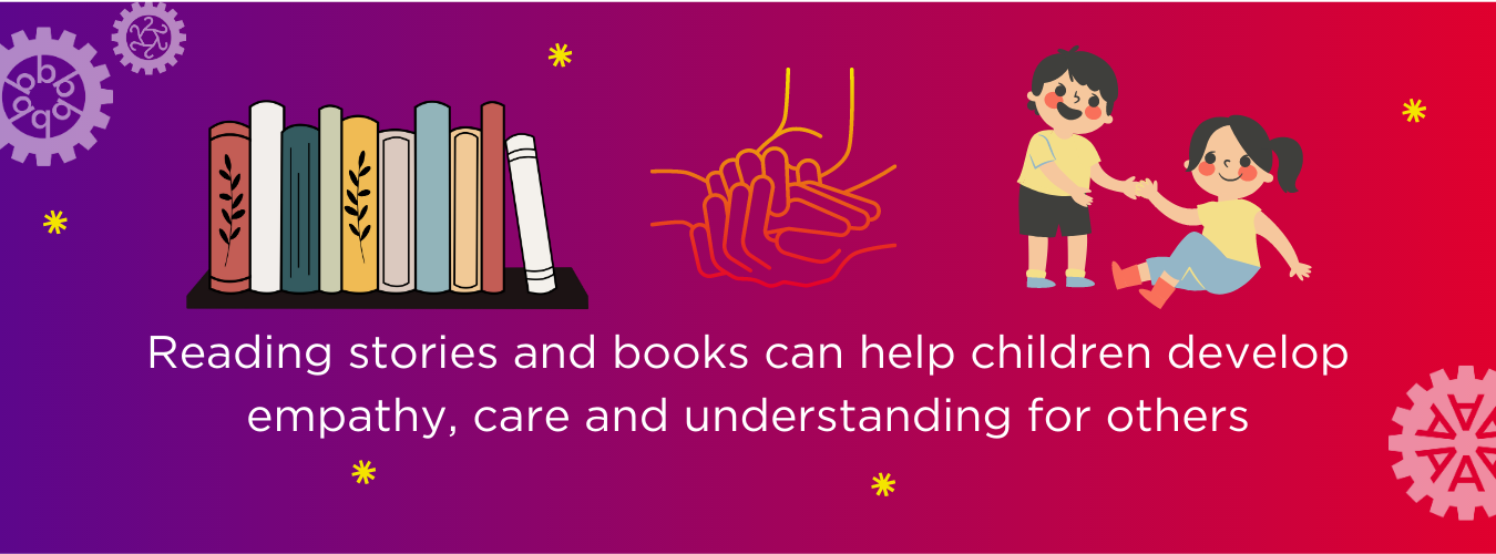 Reading supports the development of empathy in children by allowing them to step into the shoes of the character in the story, helping them experience the character’s emotions, thoughts and perspectives, which develops empathy, care and understanding for others in the real world, as they find parallels between the two environments.