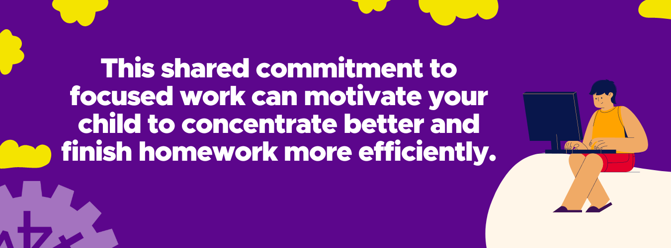 Turn homework time into a family activity. Create a conducive environment where everyone in the household is engaged in their quiet activities. This shared commitment to focused work can motivate your child to concentrate better and finish homework more efficiently. Plus, it sets a positive example, showing them the importance of dedication and hard work.
