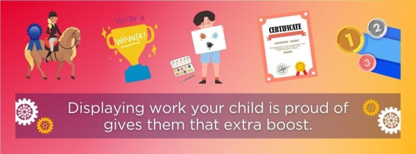 Displaying work your child is proud of gives them that extra boost. It might be a certificate of achievement, a short story, a club rosette or artwork that you can place on the fridge. Sometimes the win is the child participating in something or seeing the boost in their confidence, so a great way to commemorate this is to take a photograph to put on the wall later. You can use this as a reminder of how far your child has come and share it with the team and your family and friends. You can make this into a pin board or a collage full of positive successes.