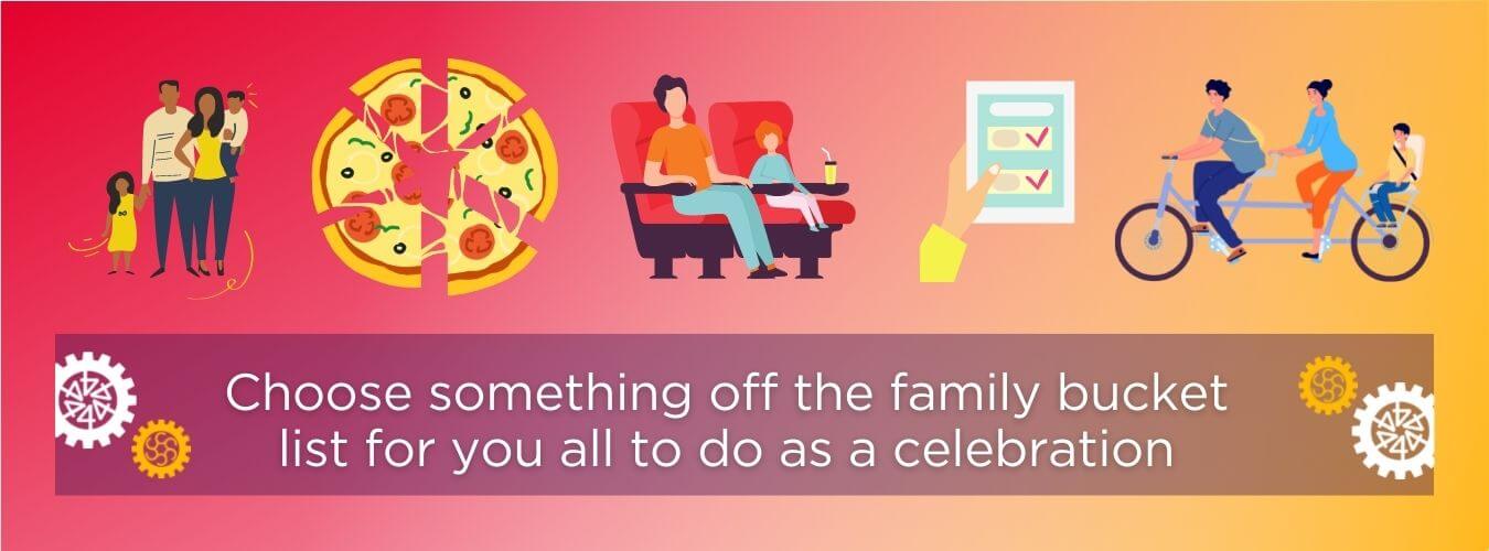 A fun way to celebrate your child's success is to spend an afternoon together and create a family bucket list. Making a group bucket list is a great team activity because you are working together and also planning more group activities for the future. But the real reward is that each time your child has achieved a milestone, they can choose something off the family bucket list for you all to do as a celebration. For instance, booking a karaoke night, a tour of the local stadium, or buying an elaborate cake when it's not for a birthday.