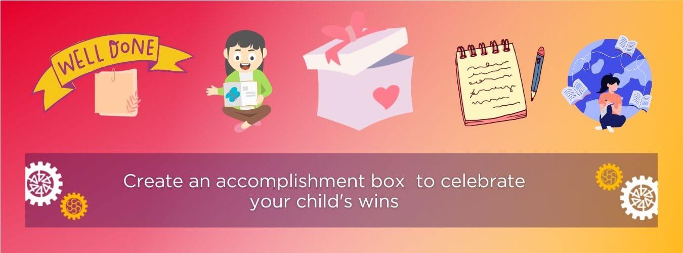 Making an accomplishment box is a fun way to celebrate success by noting down your child's wins, helping them to stay motivated and push ahead with confidence. Set up an embellished box where your child can write all their small wins down and drop them in - like coins into a piggy bank. It can be simple things like 'Today I moved up a reading level' or 'Listened to mum when she asked me to collect the dinner plates’. The box works well to help celebrate small wins as well as larger milestones. If your child feels like they aren't getting anywhere, you can get them to read out a handful of achievements from the box to remind them of their progress.